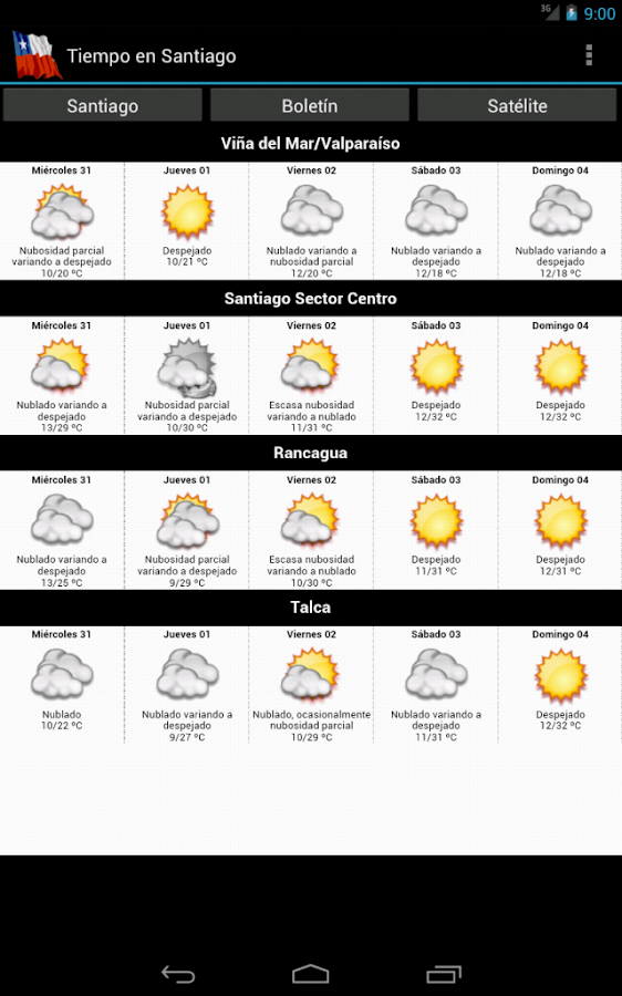 Consulte las condiciones actuales en santiago de chile, región metropolitana de santiago, chile para el resto del día con previsiones de radar, por horas y al minuto. Temperaturas, probabilidad de lluvias y velocidad del viento. El tiempo en santiago predicción 15 días. El lunes, 24 de agosto 2020 en santiago el tiempo será: Visualiza el pronóstico actualizado del tiempo, mapas, noticias y alertas, todo en yahoo clima.